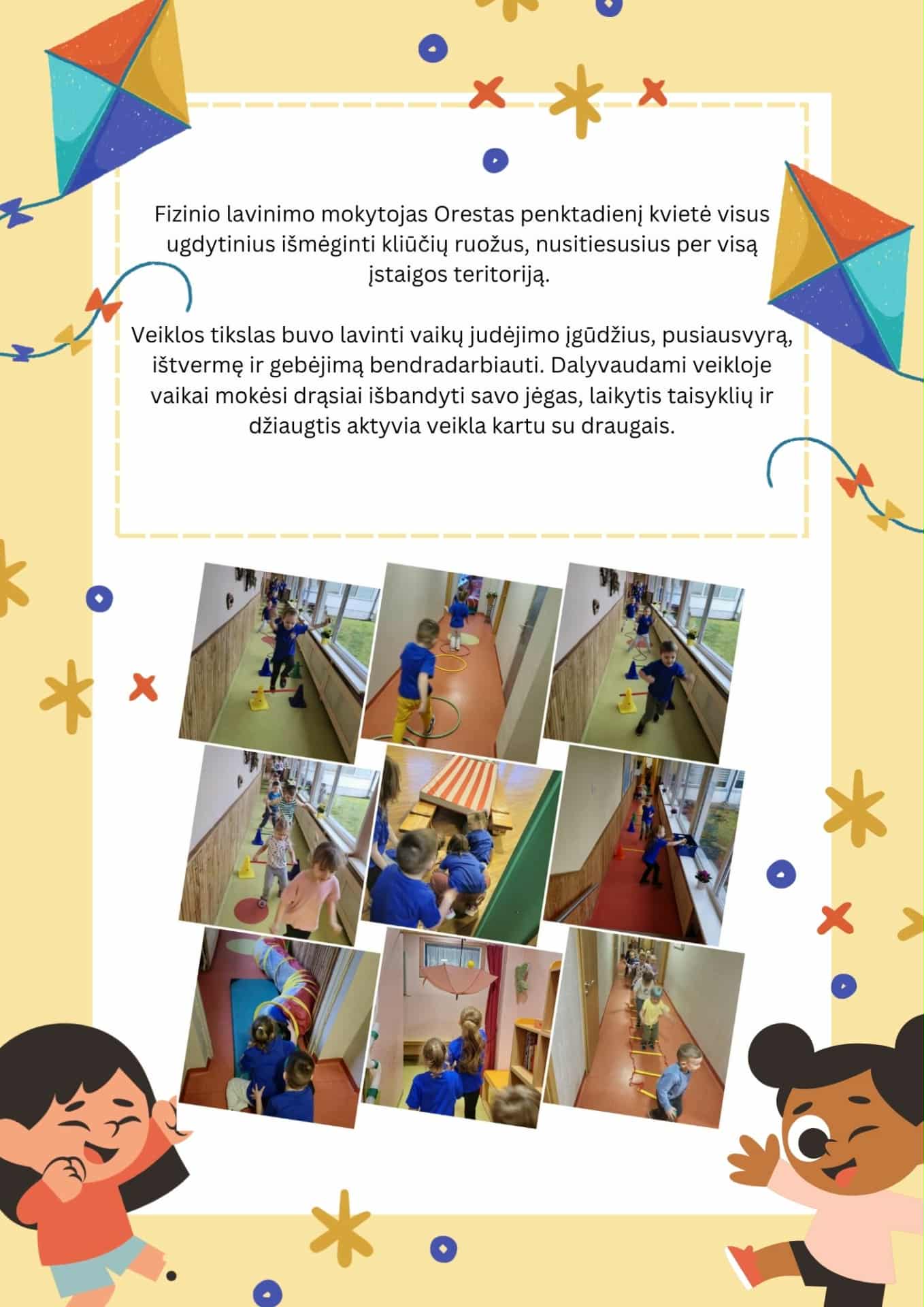 Aktyvusis penktadienis Lapkričio 14-ąją dieną fizinio lavinimo mokytojas Orestas ugdytiniams organizavo smagius ir įtraukiančius kliūčių ruožus visoje įstaigos teritorijoje.Džiaugiamės vaikų entuziazmu ir aktyviu dalyvavimu! Tolerancijos gatvė Skaitymo savaitė